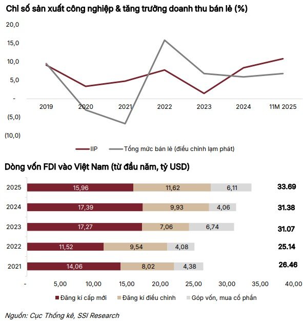 Nhìn chung các con số vĩ mô trong tháng 11 đều đạt kỳ vọng, có thể thấp hơn so với kế hoạch tăng trưởng 8.4% trong quý IV của Chính phủ do những đình trệ liên quan tới thiên tai, nhưng nhiều khả năng vẫn đạt con số 8% cho cả năm 2025.
