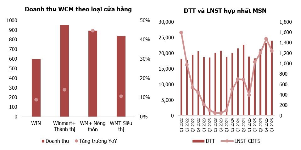 BLĐ cho biết, với tỷ suất sinh lời đạt mức 40% và thời gian hoàn vốn dưới 3 năm cho một cửa hàng mới, WCM đang tăng tốc mở rộng mạng lưới, đặc biệt tiến sâu vào khu vực nông thôn (70% lượng cửa hàng mở mới). WCM có tham vọng lớn với 13.000 cửa hàng trong 2030 với 120.000 tỷ đồng doanh thu, biên LNST 6% tương đương 7.200 tỷ VNĐ so với mục tiêu 1.000 tỷ trong 2026.
