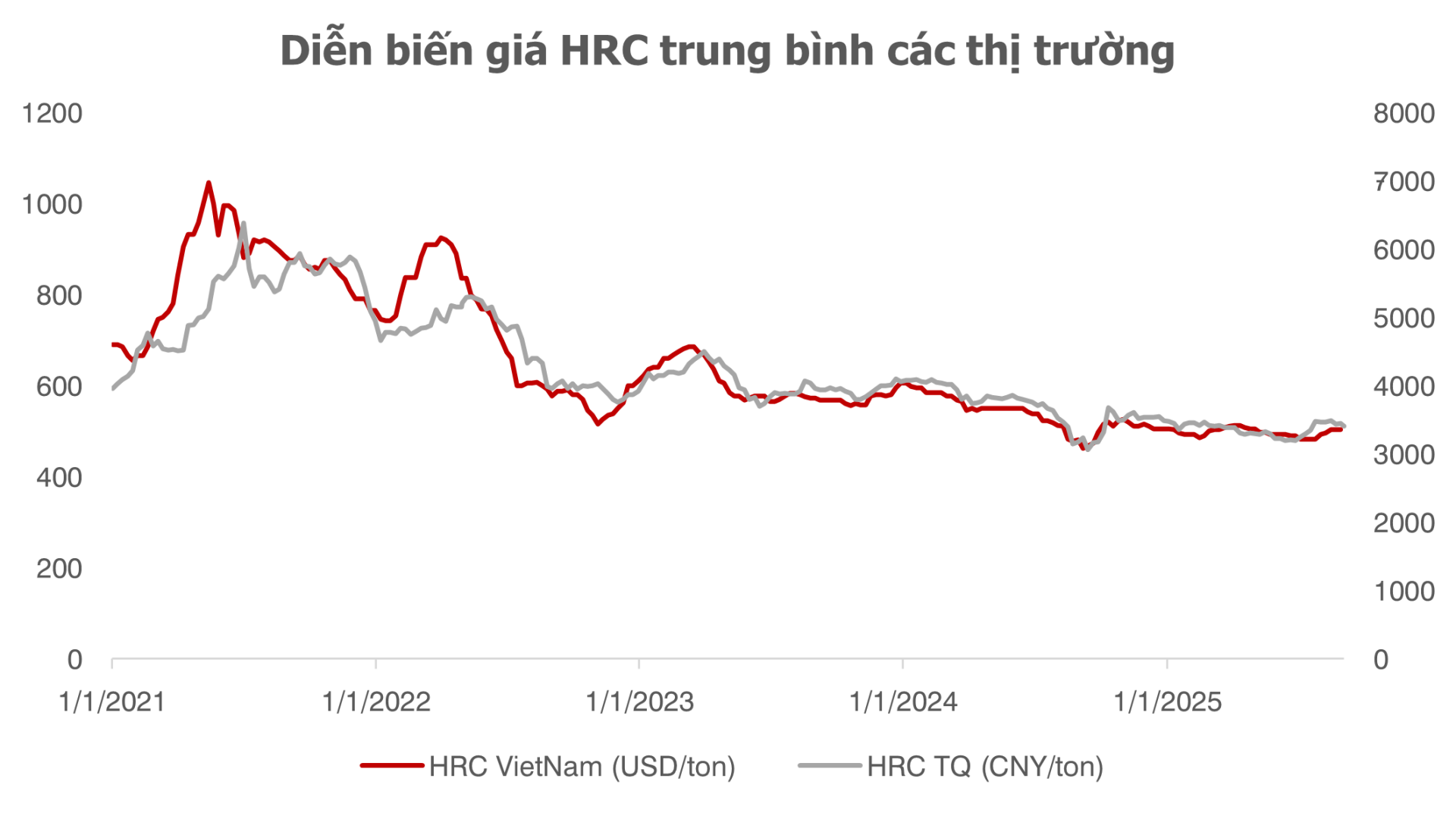 Các biến động khác gần đây của giá thép TQ diễn ra hai chiều. Giá HRC và thép thanh tại thị trường này ấm lên sau các quyết sách của Trung Quốc về kiểm soát cạnh tranh tiêu cực của các ngành nghề đang diễn ra trạng thái dư cung, trong đó có ngành thép. Mặc dù vậy trong ngắn hạn, chưa có các chế tài cụ thể giải quyết vấn đề này khiến cho giá thép có dấu hiệu nguội đi trong tuần qua. Tính chung trong 2025, giá thép vẫn đi ngang ở vùng thấp chủ đạo, chưa thấy dấu hiệu thay đổi xu hướng.
