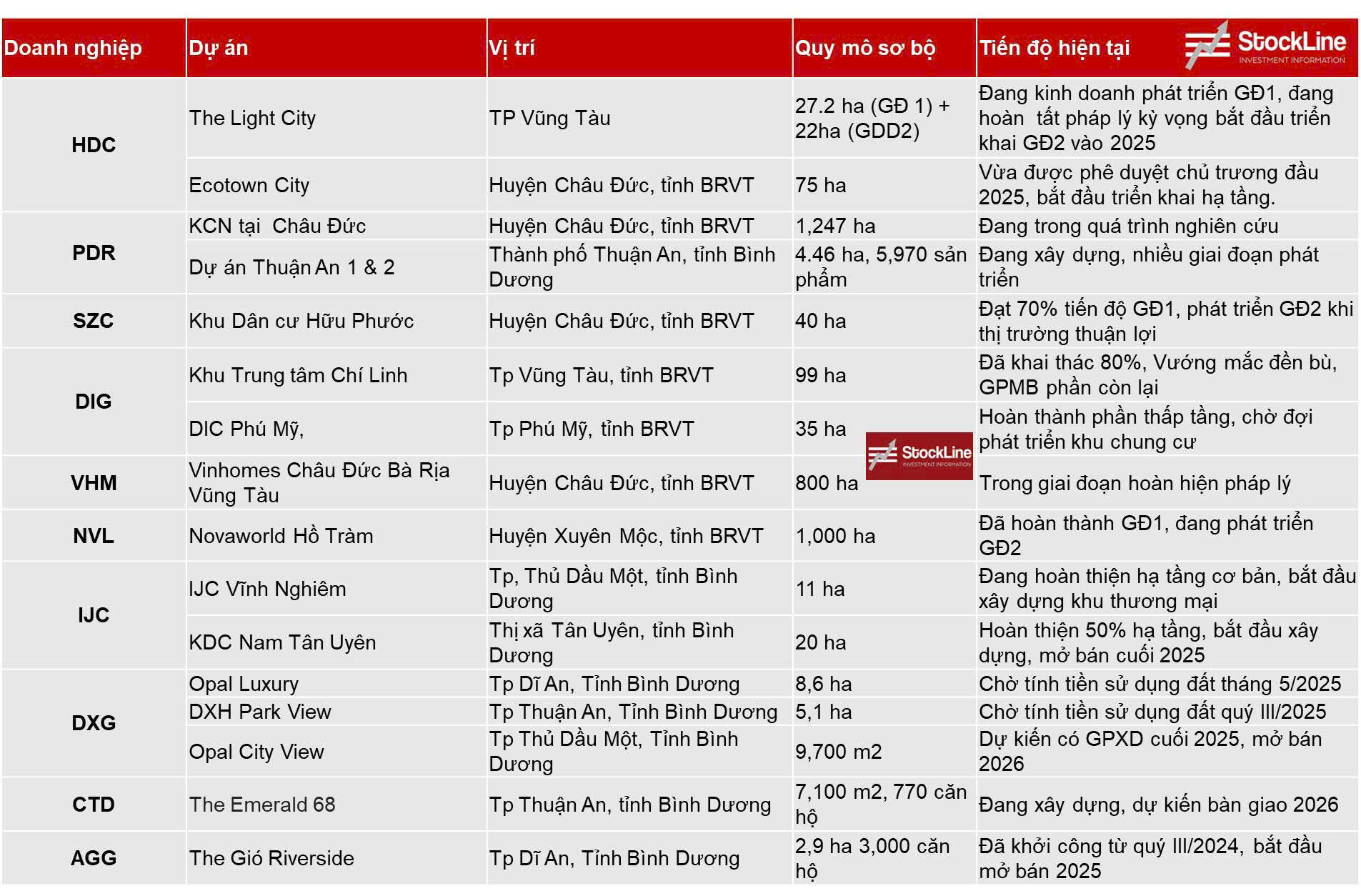 Chúng tôi thống kê một số doanh nghiệp Bất động sản Dân cư có “địa bàn” tại hai địa phương đang nhận được những đồn đoán. Tuy vậy, để trở thành cơ hội đầu tư, tiến độ thực tế các dự án này quan trọng không kém những biến động vĩ mô, chúng tôi cũng đã sớm có những lựa chọn của riêng mình ngay cả khi chưa có thông tin đồn đoán vừa qua.