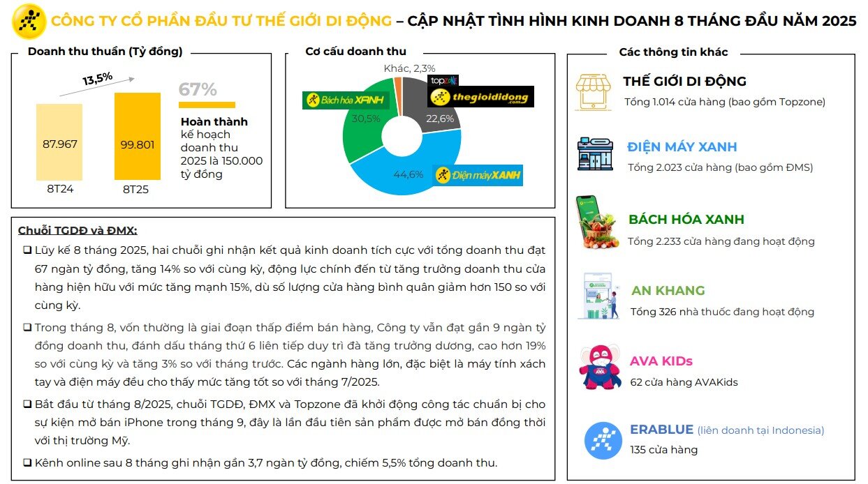 MWG công bố kết quả kinh doanh tháng 8 với kết quả tiếp diễn tích cực trên hầu hết các chỉ tiêu quan trọng.
